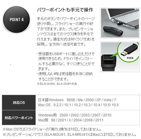 ●手元のボタンでパワーポイントのページ送りや戻し、スライドショーの実行や終了が可能