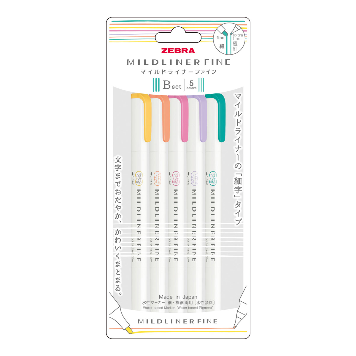 ゼブラ 水性マーカー マイルドライナーファイン 細・極細両用 水性顔料 5色セット 限定 WYT9-5C -B/5色セットBの詳細情報