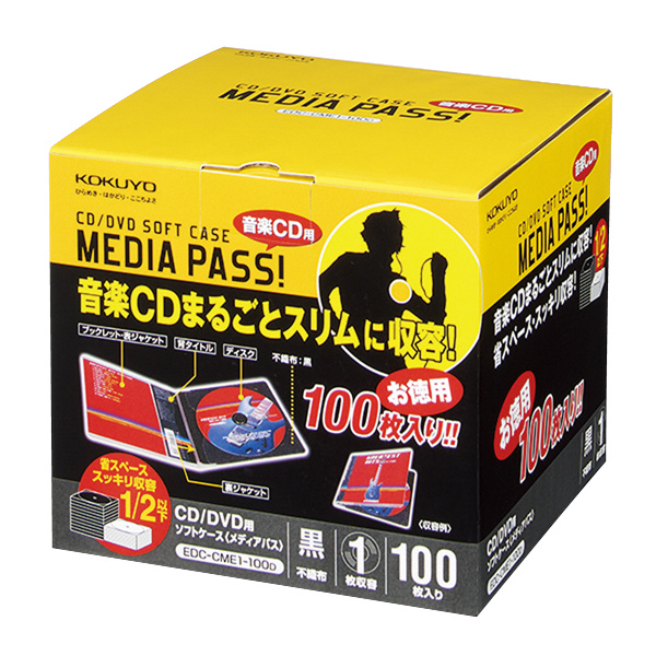 コクヨ CD/DVD用ソフトケース<MEDIA PASS>1枚収容 100枚 黒 EDC-CME1-100Dの詳細情報
