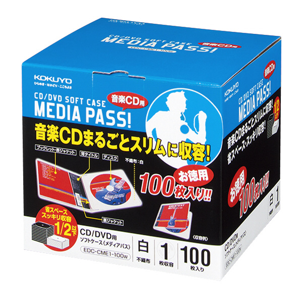 コクヨ CD/DVD用ソフトケース<MEDIA PASS>1枚収容 100枚 白 EDC-CME1-100Wの詳細情報